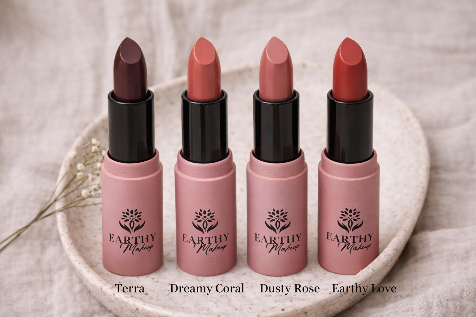 At Earthy Makeup, our lipstick is thoughtfully formulated with clean, skin-loving ingredients designed to glide smoothly without irritation. We avoid harsh chemicals, unnecessary fillers, and synthetic additives often found in conventional eyeliners. The result is a comfortable, breathable formula that feels lightweight while delivering rich, buildable color. Our commitment to vegan and cruelty-free cosmetics means you never have to compromise your values for performance. Each lipstick is developed under strict European cosmetic standards, ensuring safety, quality, and consistency in every shade.